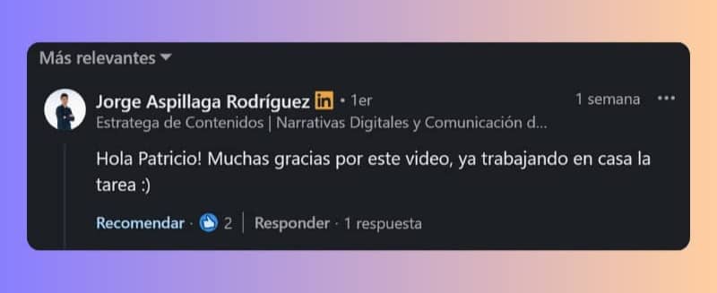 Después de esta consultoría gratuita de 5 minutos que hice al newsletter Poder de The Clinic, Jorge Aspillaga, editor del medio, me respondió lo siguiente en Linkedin: “Hola Patricio! Muchas gracias por este video, ya trabajando en casa la tarea :)”.